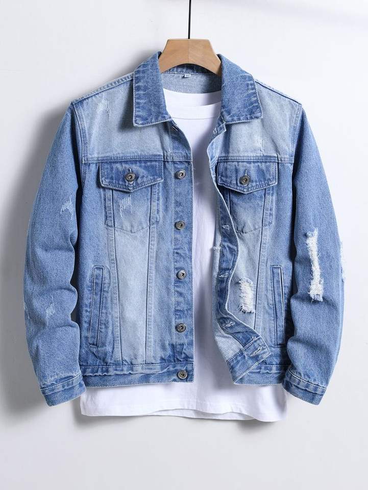 High Quality Vintage Winter Casual Denim Jacket for Men with Logo Acid Wash 100% Cotton