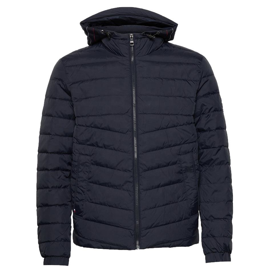 High Quality Denim Leather Men's Winter Puffer Jacket Hooded Waterproof Breathable Vintage Customizable Front Logo 2026