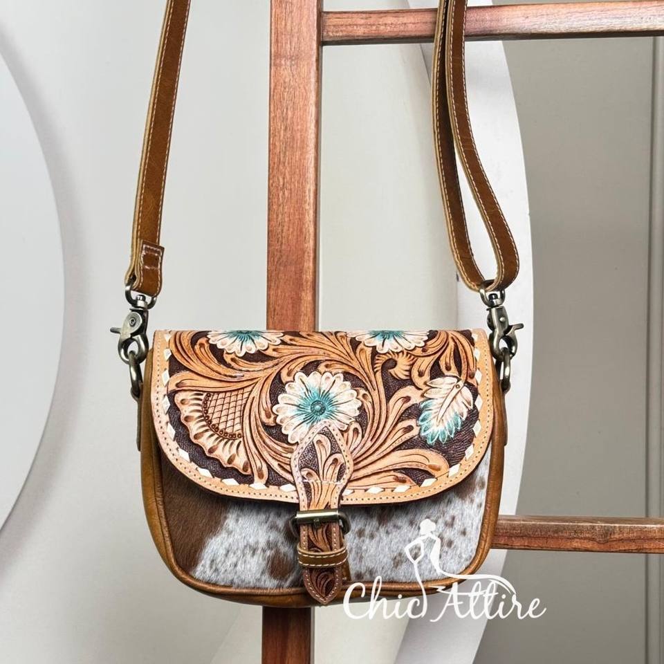 Product name:Hand Tooled Cowhide Leather Crossbody Purse