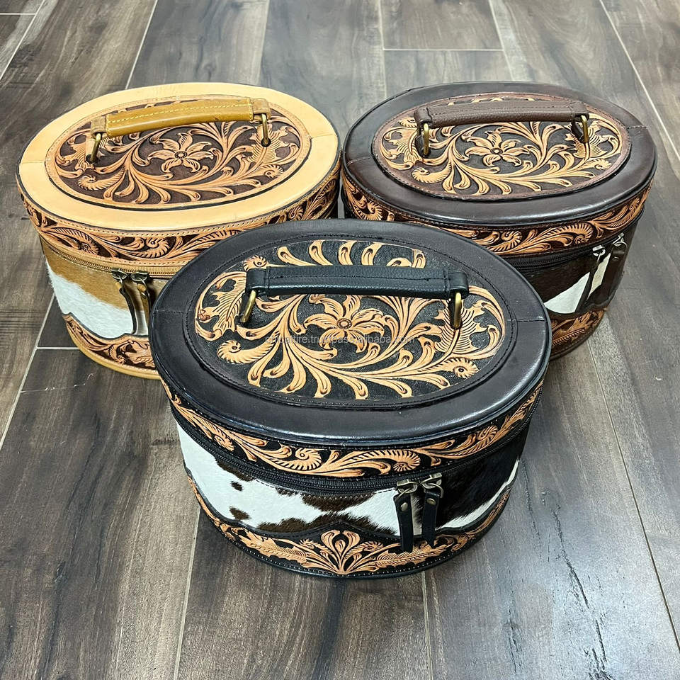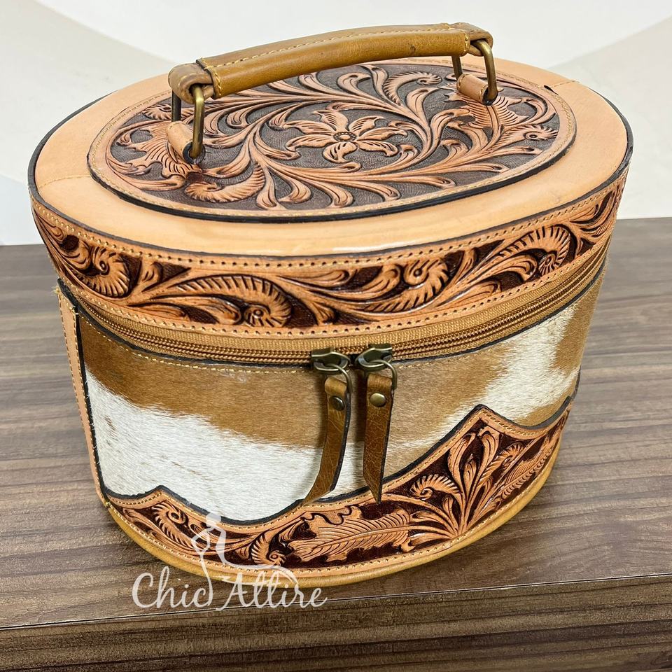 Product name:Hand Tooled Cowhide Leather Makeup Bag & Vanity Case
