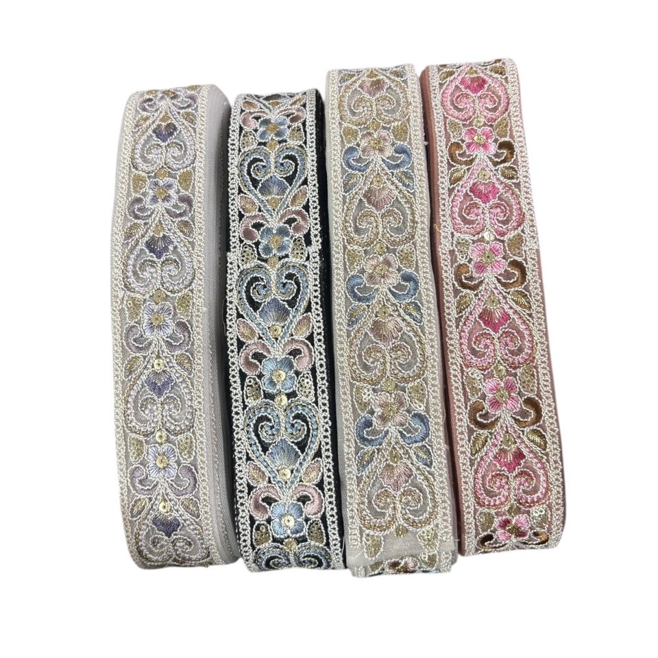 High Quality Designer Net Lace Ribbons Crochet Yarn with Embroidered Sequins Garter Wholesale Price for India Export Decoration