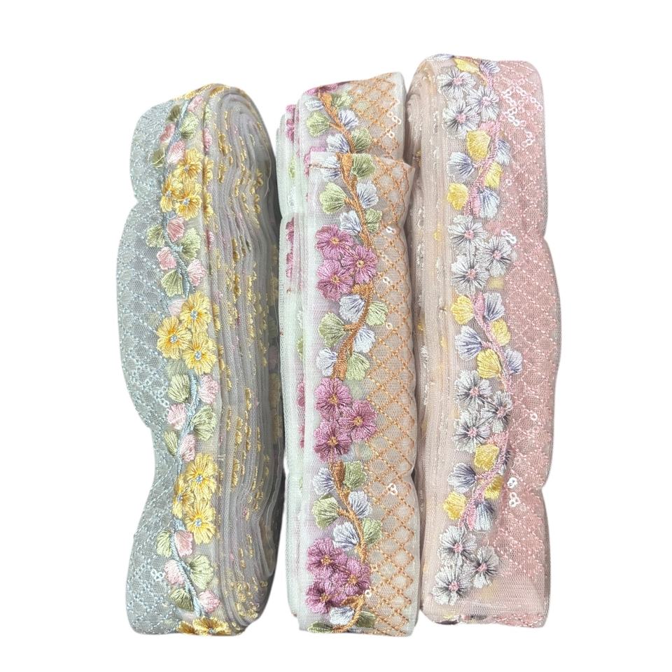 High Quality Designer Net Lace Ribbons Crochet Yarn with Embroidered Sequins Garter Wholesale Price for India Export Decoration