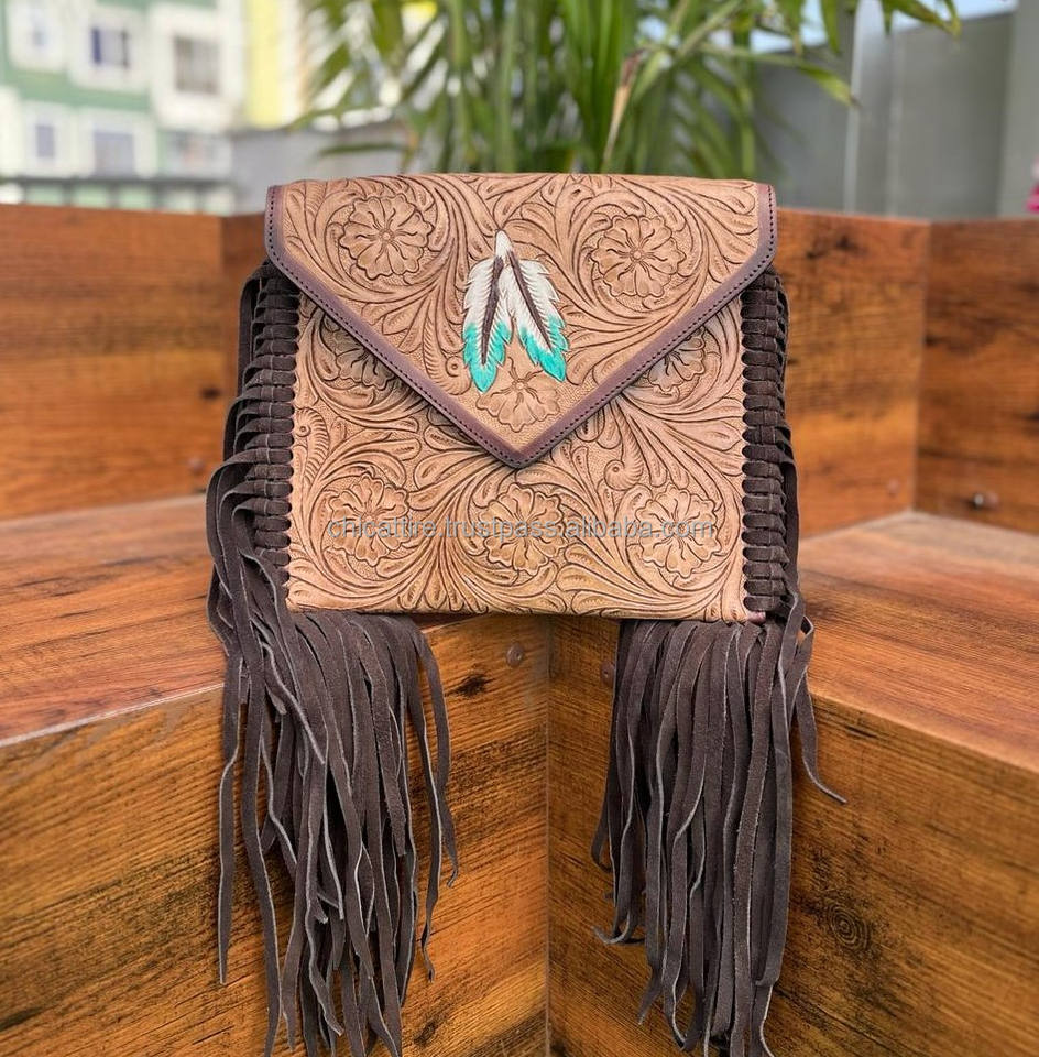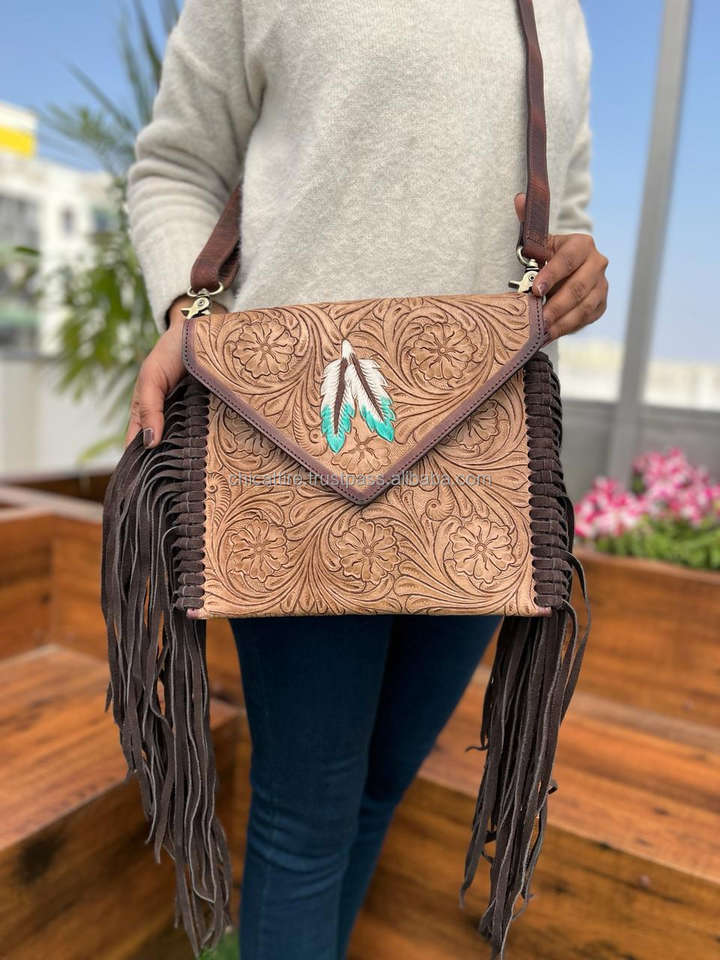 Product name:Stylish Color Tooled Leather Large Fringe Sling Bags