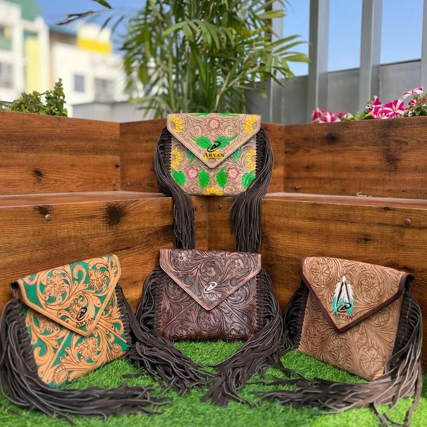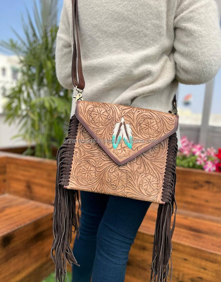 Type:Stylish Color Tooled Leather Large Fringe Sling Bags