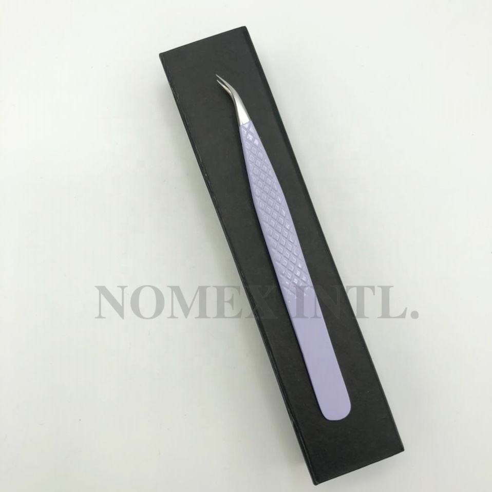 Light Purple Powder Coated Eyelash Extension Tweezers Semi Curved Sharp Points Lash Lifting Tweezers Stainless Steel Custom Logo