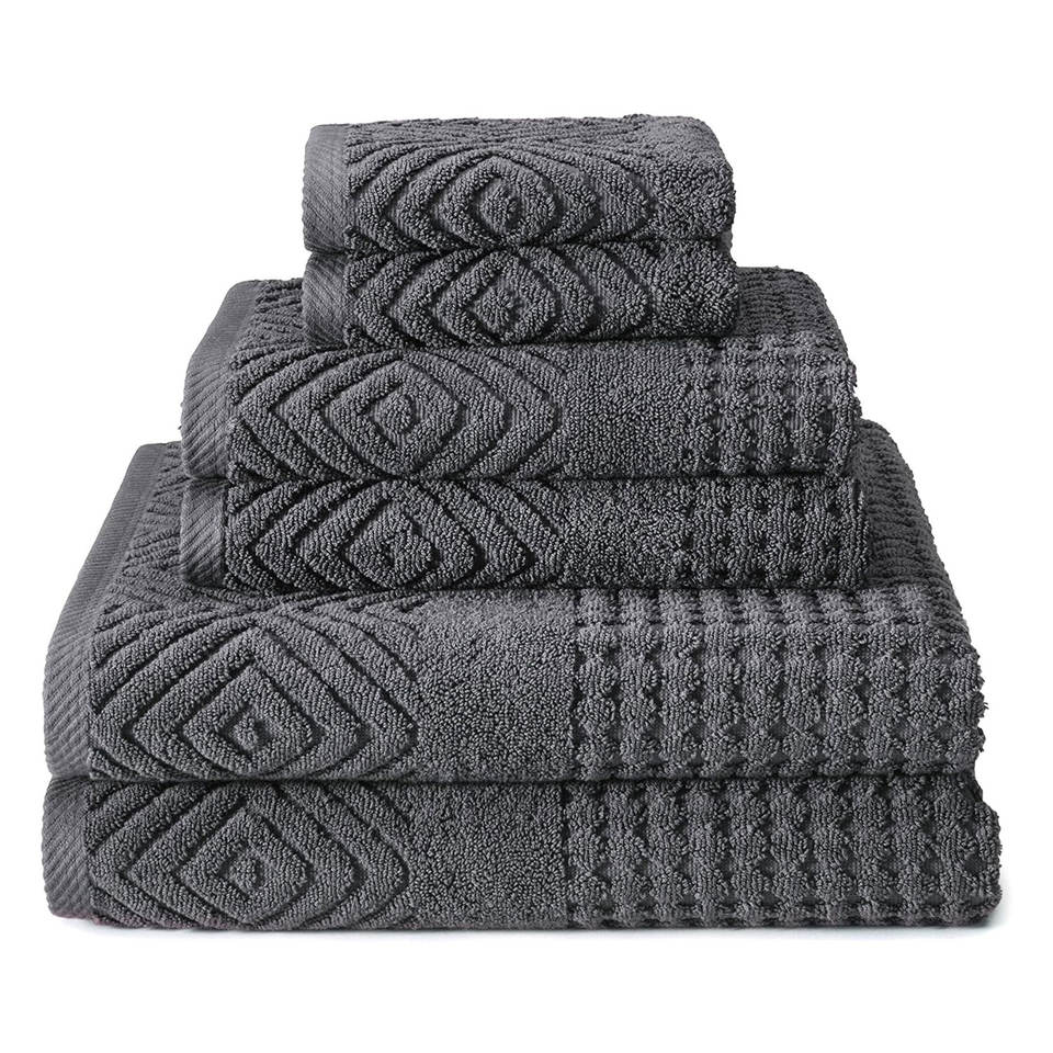High-Quality Diamond Jacquard Bath Towels Organic Cotton 6-Piece Set for Hotel Spa & Home Soft and Quick-Drying Charcoal