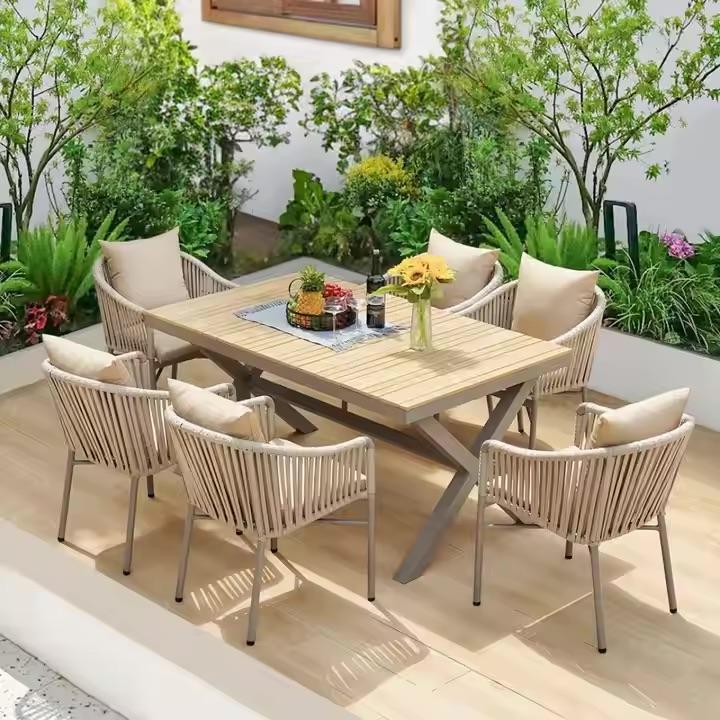 Description:Outdoor Dining Set With 1 Table And 6 Chairs