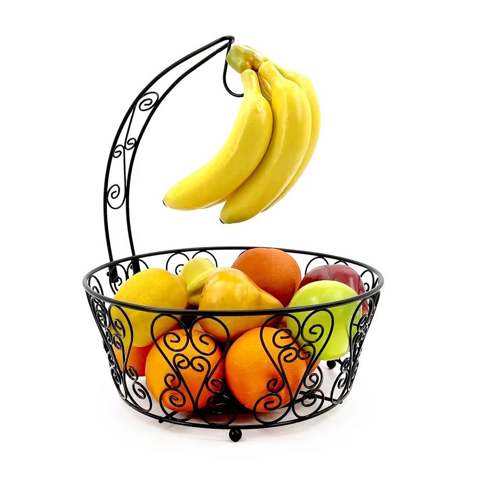High Quality Double Layered Black Metal Wire Eco-Friendly Multifunction Fruits Basket Modern/Classic Design Customizable Shape