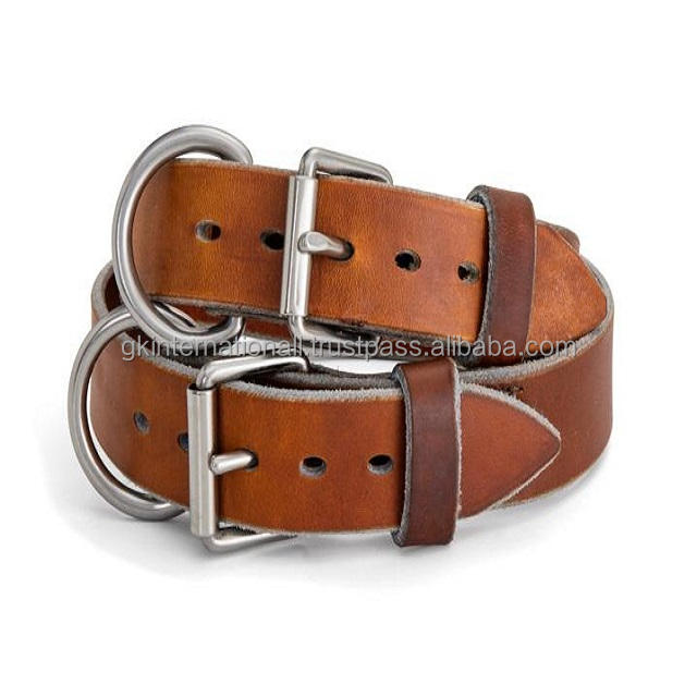 High Quality Durable Chrome Tanned Harness Leather Dog Collar Handcrafted Custom Design With Stainless Steel Fittings
