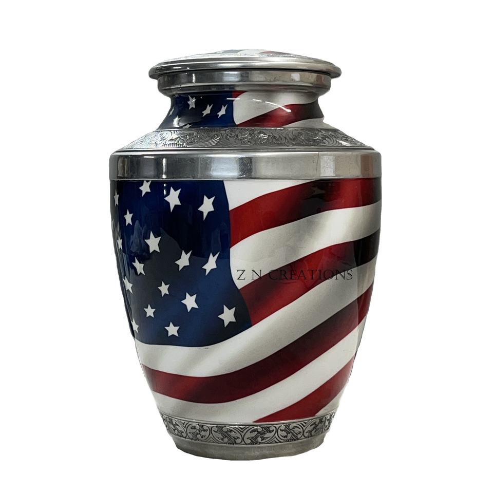 High Quality Durable Metal Aluminum Cremation Urn American Flag Design Bulk for Adult Funerals Printing Human Ashes Storage