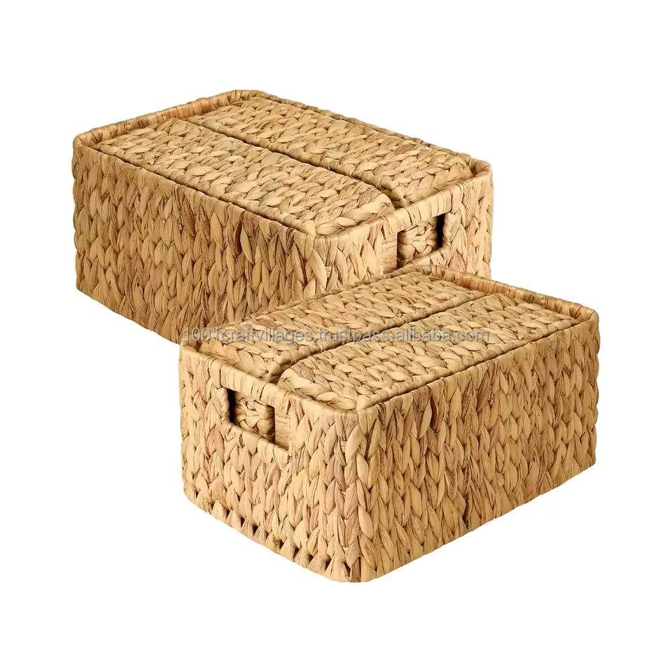 High Quality Durable Modern Handwoven Eco-Friendly Water Hyacinth Basket Daily Decorative Woven Storage Container Bathrooms
