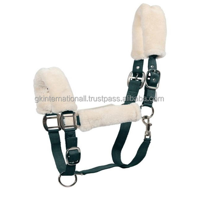 High Quality Durable Nylon Fluffy Horse Halter Comfortable Fleece Padding with Adjustable Crown and Neck Stainless Steel Fitting