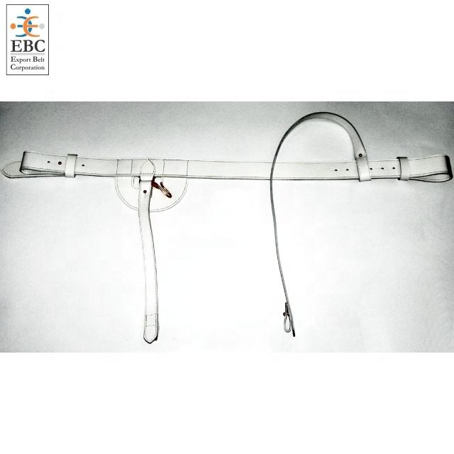 High Quality EBC Brand White Genuine Leather Waist Belt with Brass Buckle & Baton Holder Handmade Custom Size OEM From Pakistan