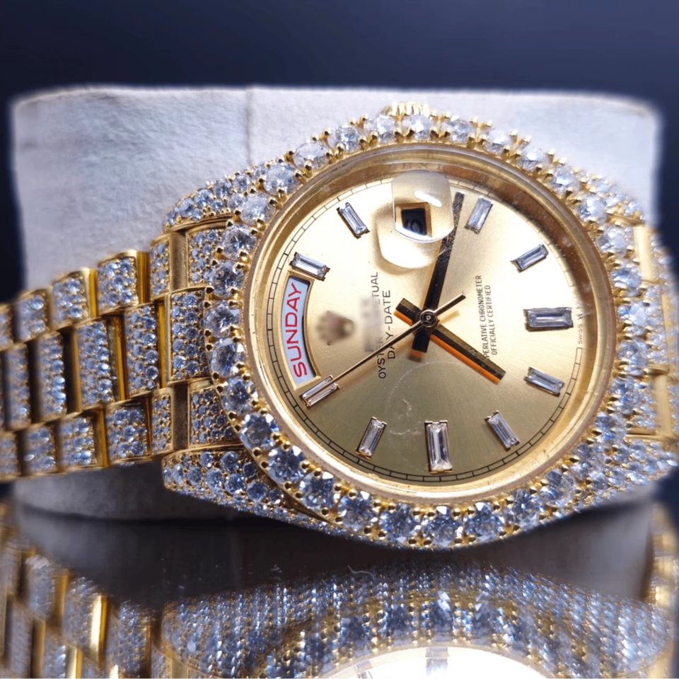 High Quality ETA Stainless Steel Analog Full Moissanite Luxury Quartz Watch Hip Hop for Men