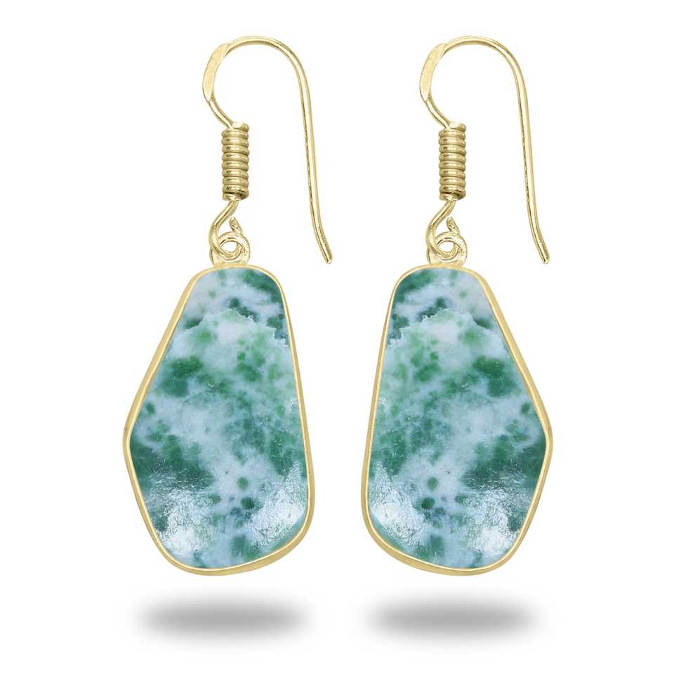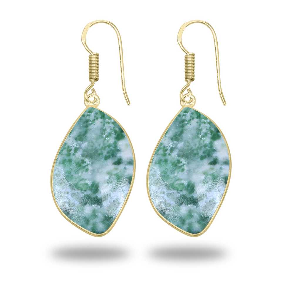 High Quality Earrings Large Bezel Setting Natural Tree Agate Dangle Earrings Fashion Stud Design 18K Gold Plated earring