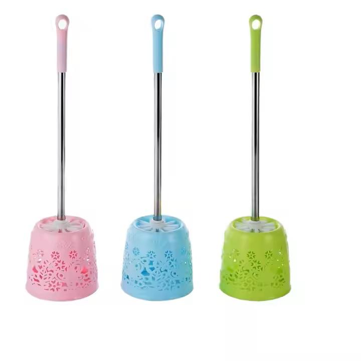 High Quality Eco-Friendly 2-in-1 Round Toilet Bowl Brush with Long Stainless Steel Handle Silicone Brush Head and Cup