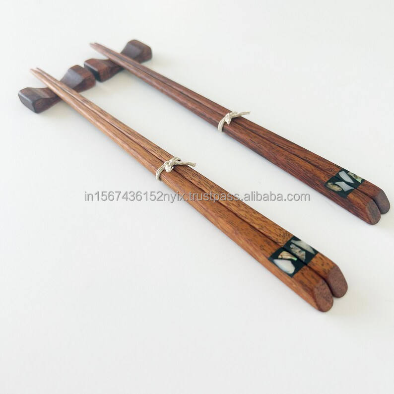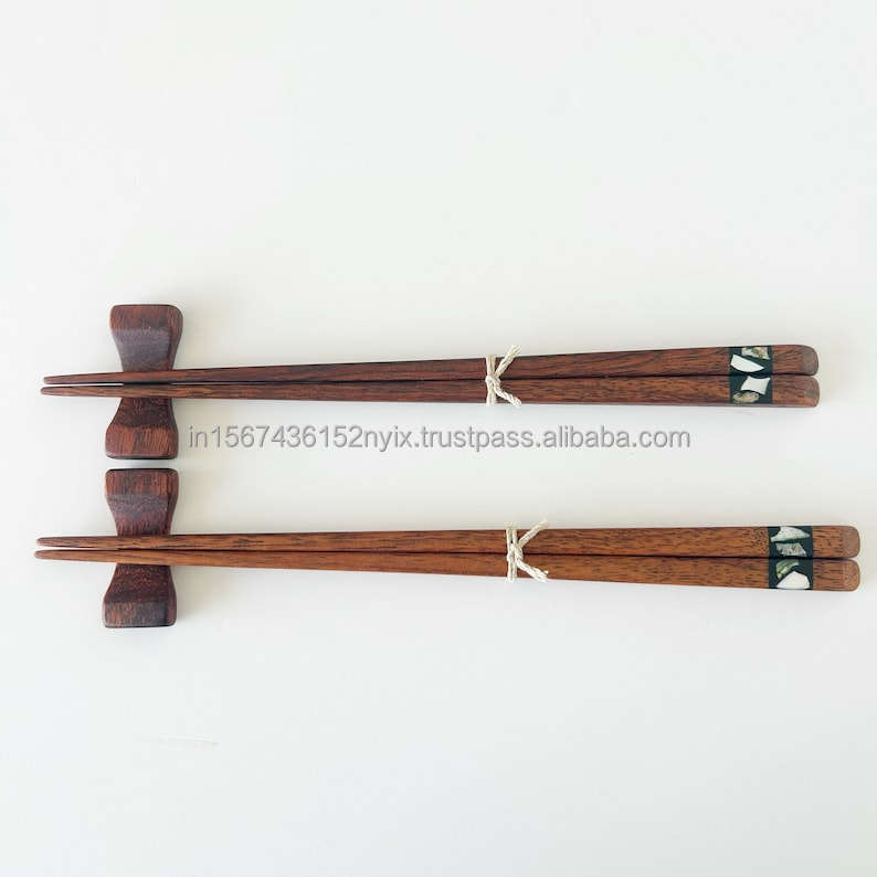 High-Quality Eco-Friendly Bamboo Flatware Set | MOP Inlaid Chopsticks with Reusable Holder | Travel & Camping Packaged Pairs
