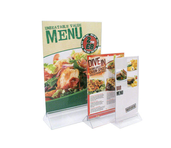 Usage:Food menu's, cocktail menu's, product promotions and more.