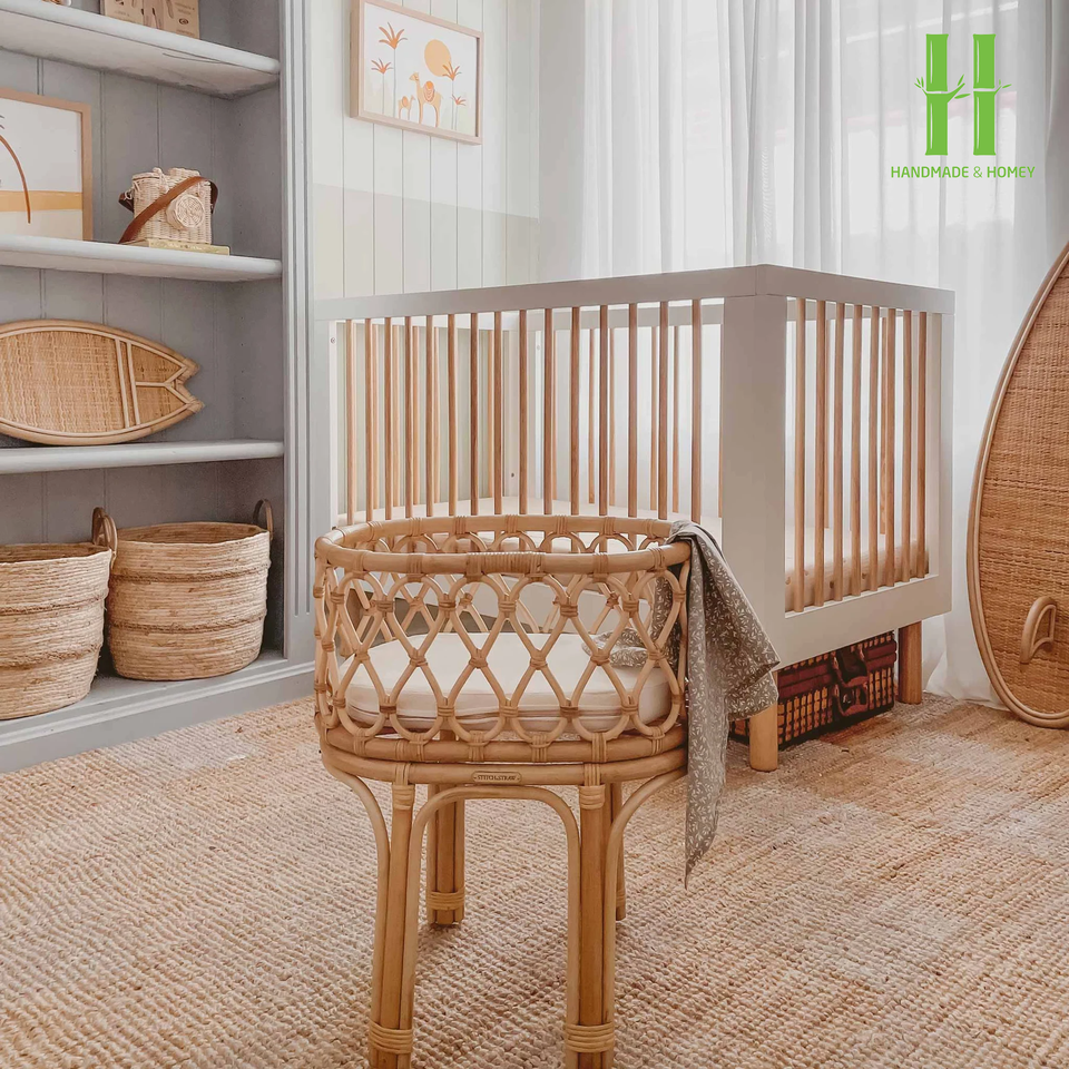 High Quality Eco-Friendly Durable Modern Infinity Rattan Doll Bassinet Kids Toys Natural Rattan Crib Made Vietnam Bedroom