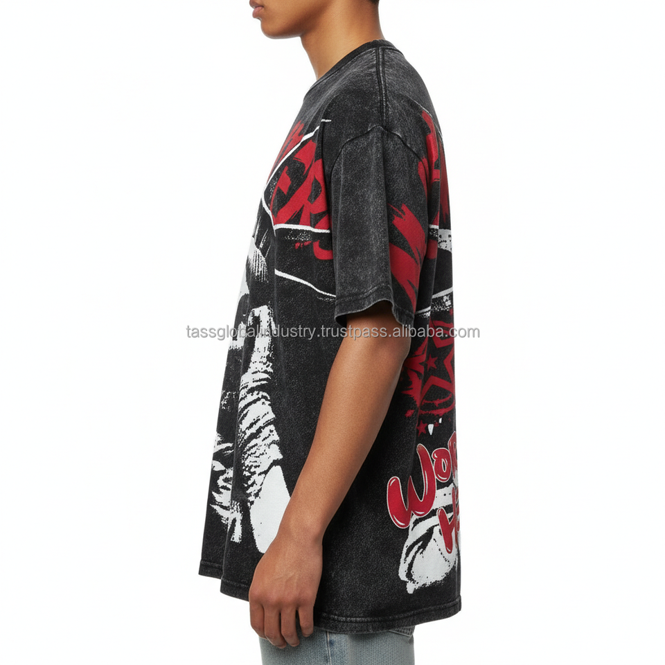 High Quality Eco-Friendly Heavyweight Boxy Oversized Streetwear T-Shirt Custom Screen Print Heavy Cotton Cropped Graphic Men