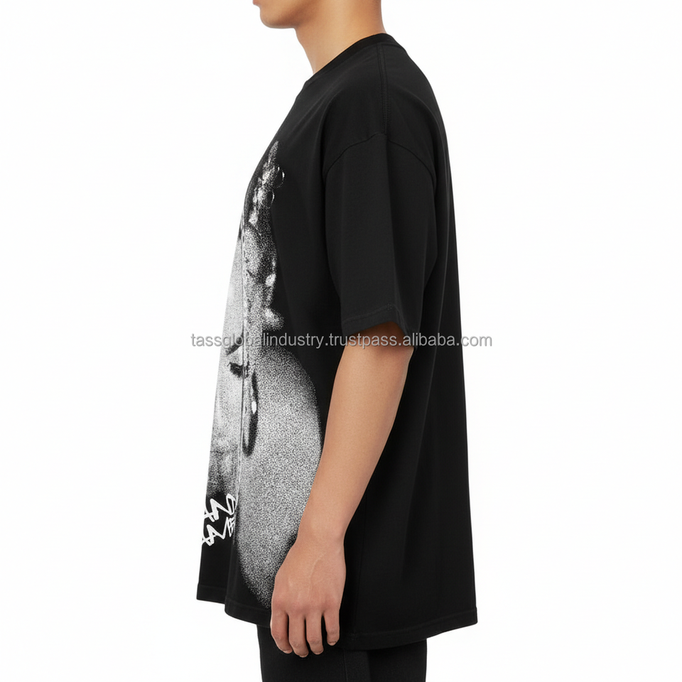 High Quality Eco-Friendly Heavyweight Boxy Oversized Streetwear Casual T-Shirt Custom Screen Print Heavy Cotton Cropped Men