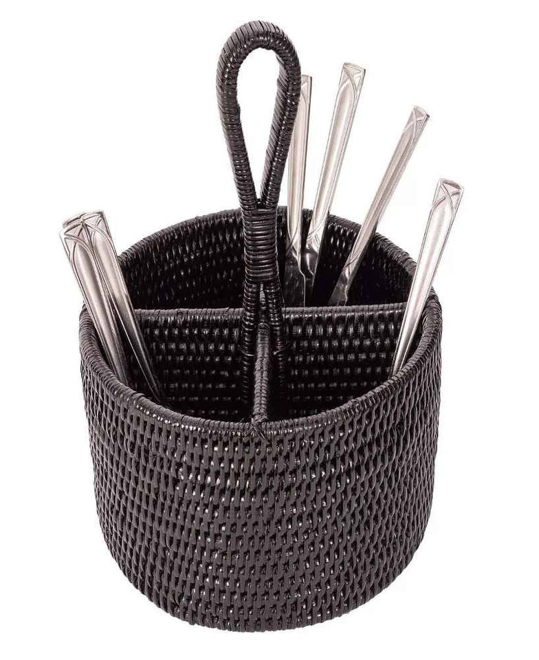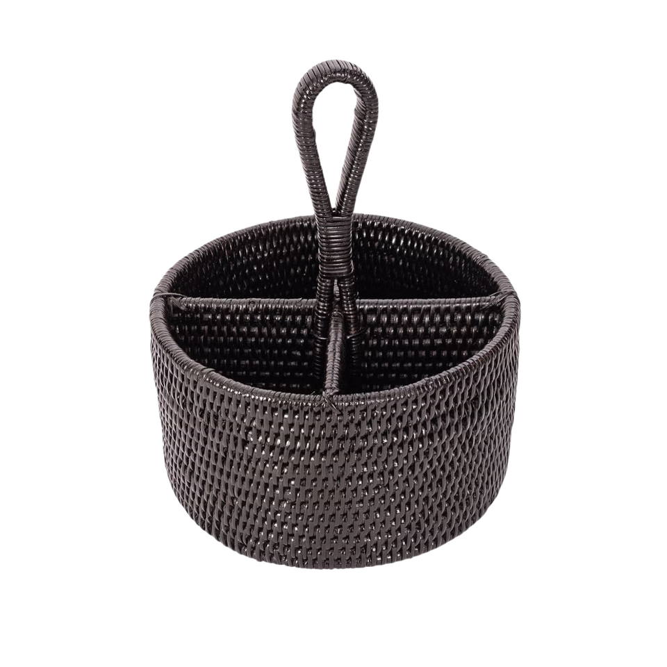 Round Rattan 4-Compartment Handwoven Utensil Holder