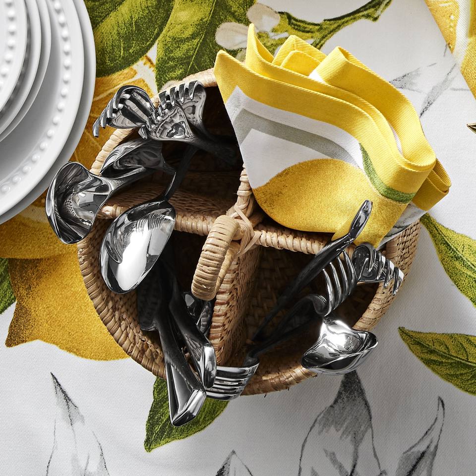 High Quality Eco-Friendly Food Safe Lightweight Rattan 4-Compartment Handwoven Utensil Holder Handle Utensil Caddy Tableware
