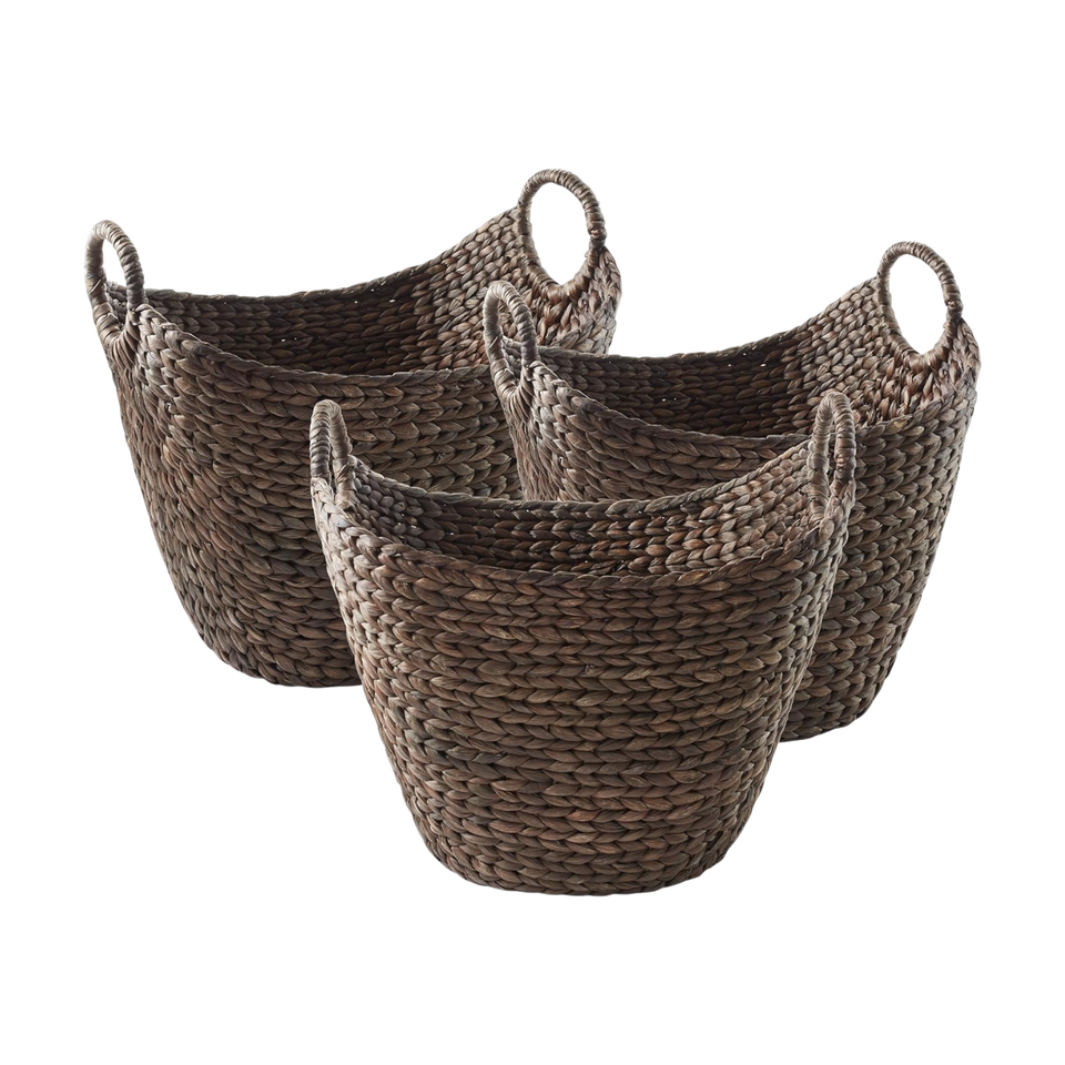 Set of 3 Dark Water Hyacinth Storage Baskets with Handle