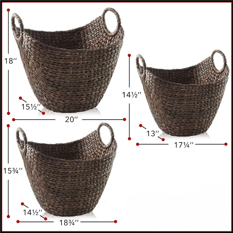 Product name:Set of 3 Dark Water Hyacinth Storage Baskets with Handle