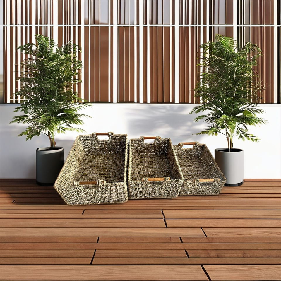 High Quality Eco-Friendly Set of 3 Vintage Seagrass Storage Trays Best Selling Sundries Basket from Vietnam