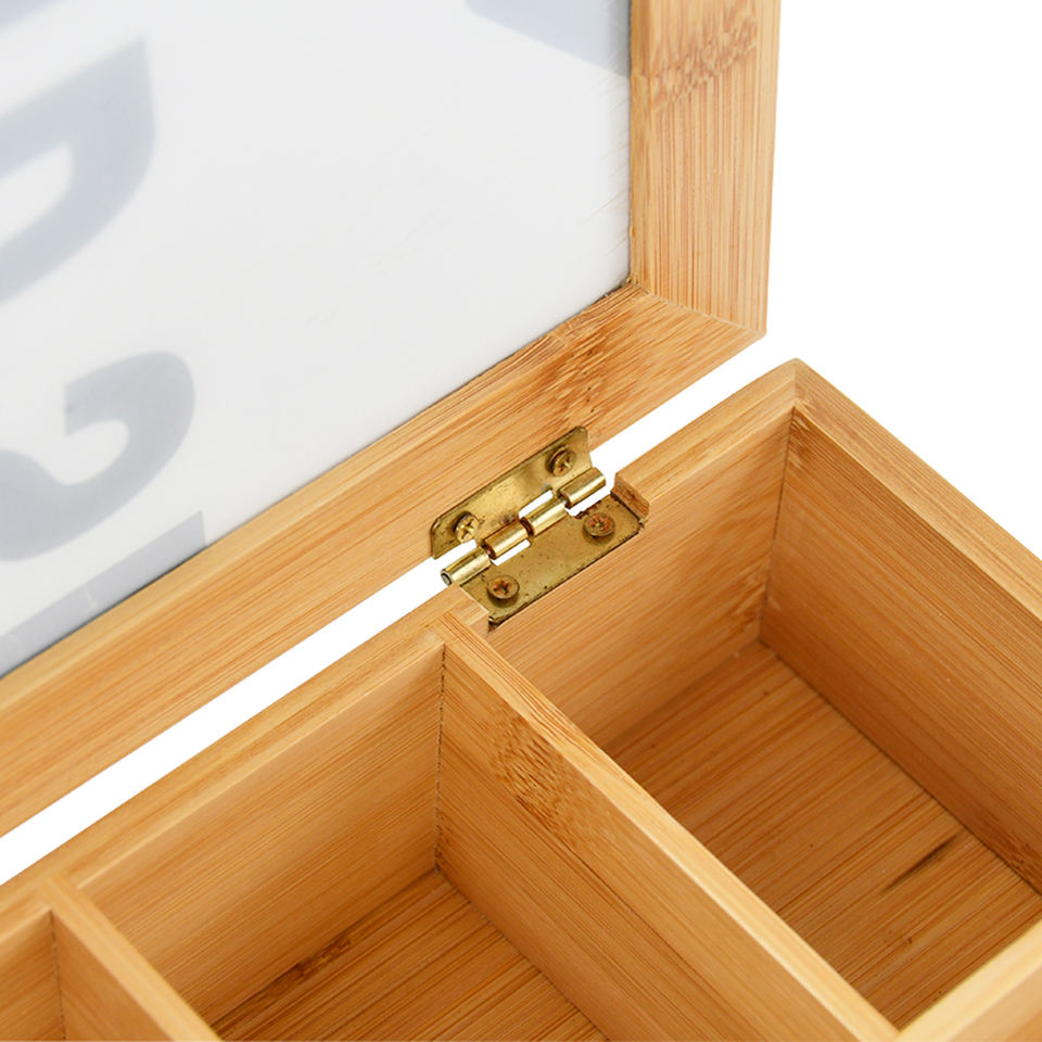 High Quality Eco Friendly Six Compartments Personalized Wooden Bamboo Tea Bag Storage Box With Clear Lid