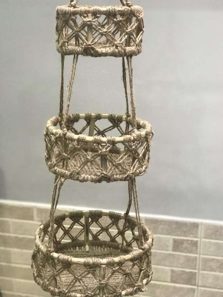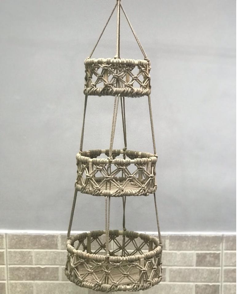 High Quality Eco-friendly Hanging Jute Basket for Home and Garden Decoration New Design Fruit Basket Hanging 3 Tier Basket