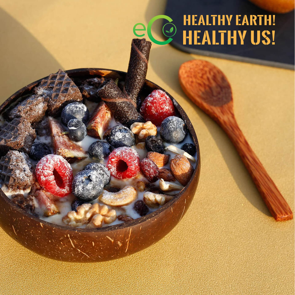 High Quality Eco2Go Vietnam Biodegradable Coconut Shell Dish Set Natural Bowls Custom Logo Cheap Natural Coconut Bowl Spoon Set