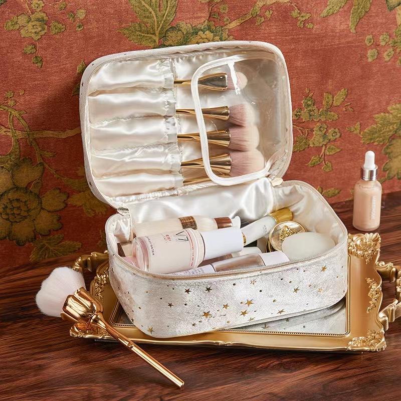 High Quality Elegant Luxury Sky Star Soft Pink Velvet Cosmetic Bag for Women Travel Storage Bags