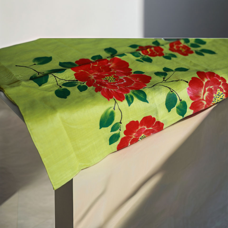 High Quality Elegant Scarf With Hand Painted Floral Pattern Handmade 100% Organic Ramie Fabric Made in Vietnam for Women
