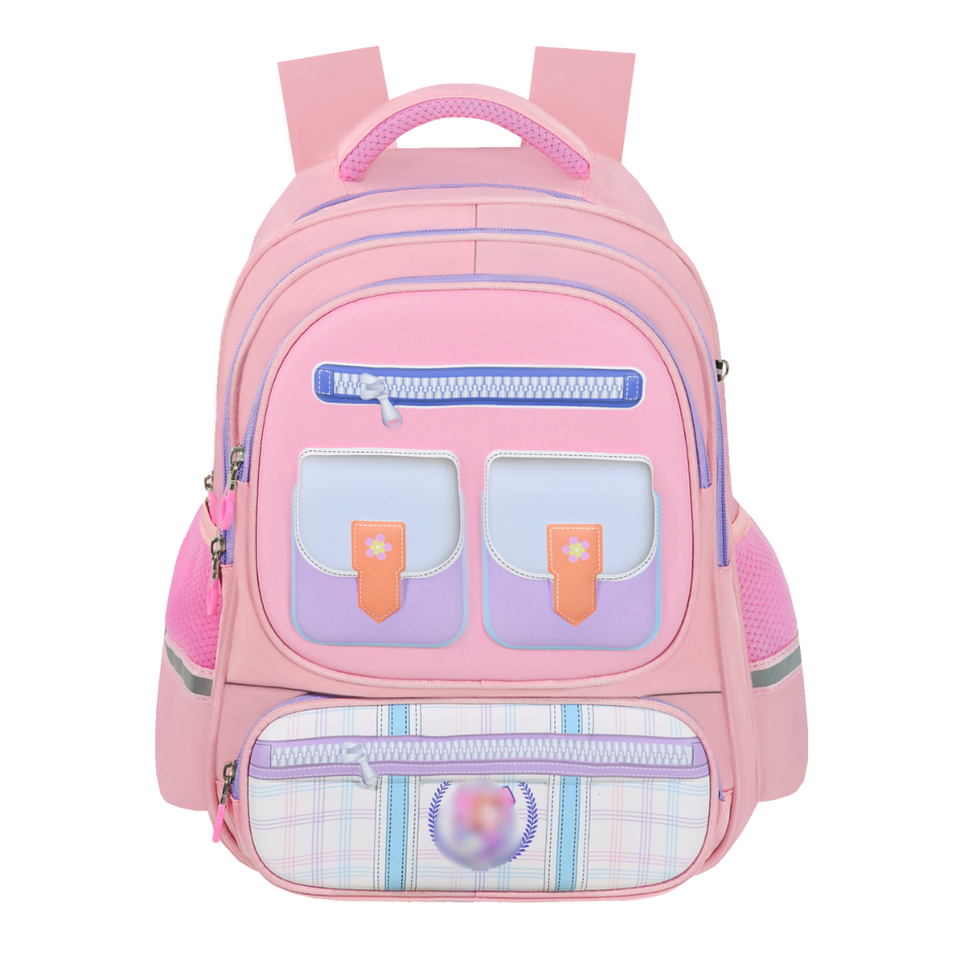 High Quality Elementary School Bag Polyester Letter Pattern Waterproof Fresh Colors Cute Design Multi Zipper Compartments