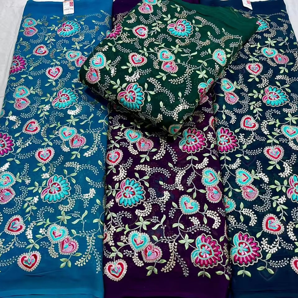 High Quality Embroidered Georgette Fabric Breathable Indian-supplied Tulle Polyester Wedding Knitted In-Stock Items Available