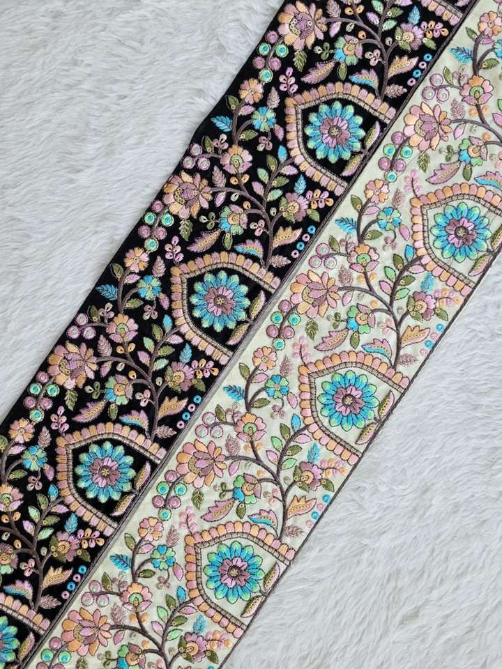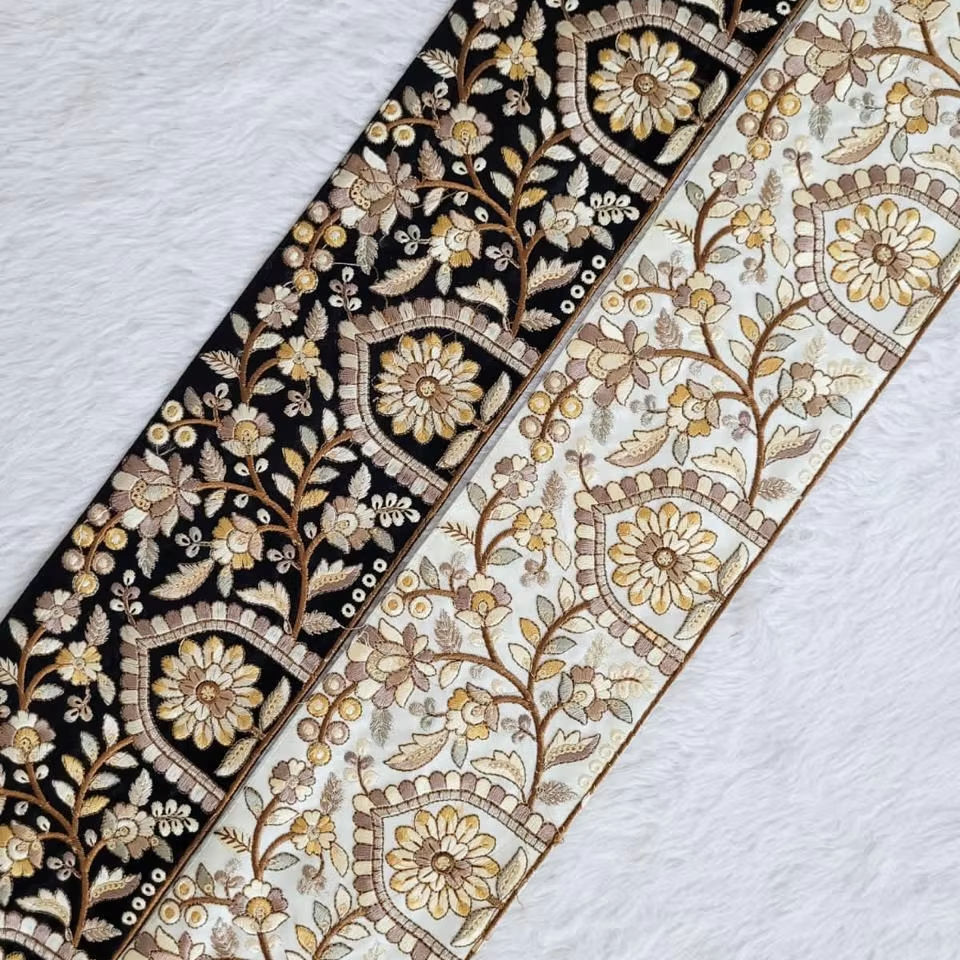 "High-Quality Embroidered Lace Fabric Elegant Floral Designs on Tulle/Net for Bridal Gowns, Dresses, Sarees, Veils & Fashion