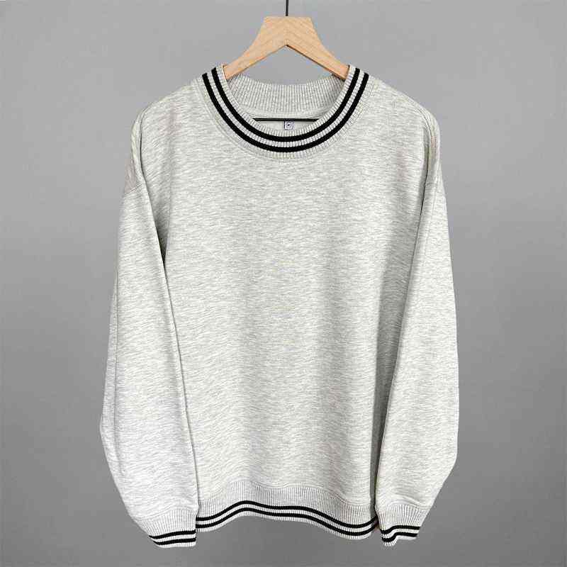 High Quality Silk Screen Printed Winter Long Mockneck Varsity Crewneck Sweatshirt with Front Logo