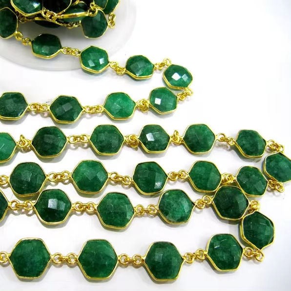 High Quality Emerald Hexagon Briolette Faceted Bezel Connector Chain Dyed Natural Stone Sold Per Foot Wholesale Price for