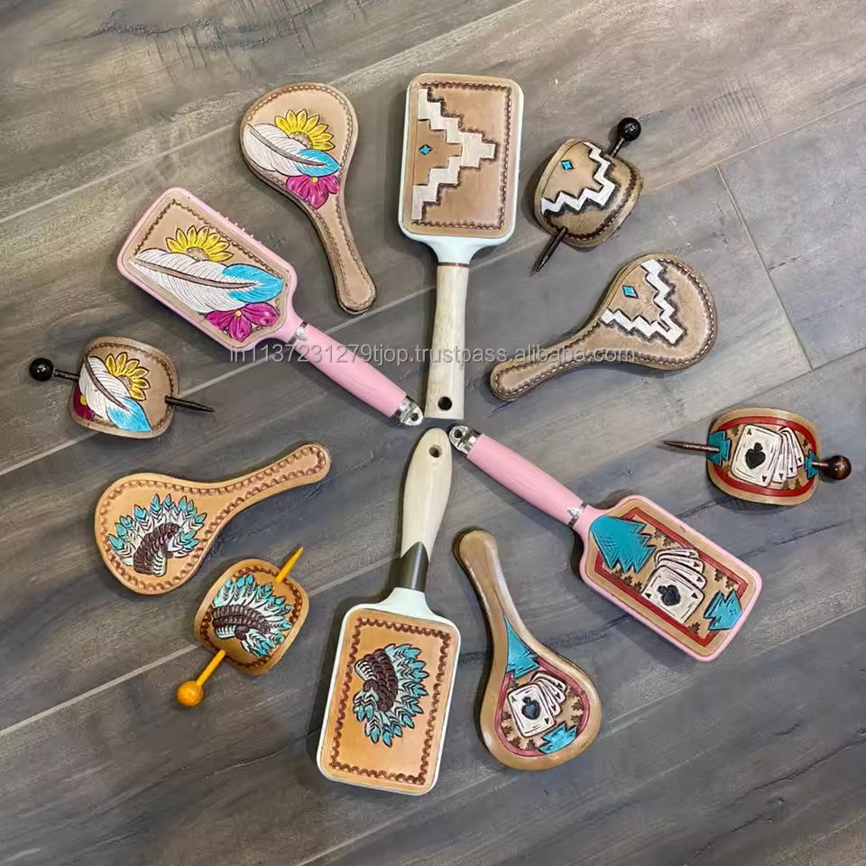 Type:Stylish Engraved Leather 3 Pcs Vanity Hair Sets