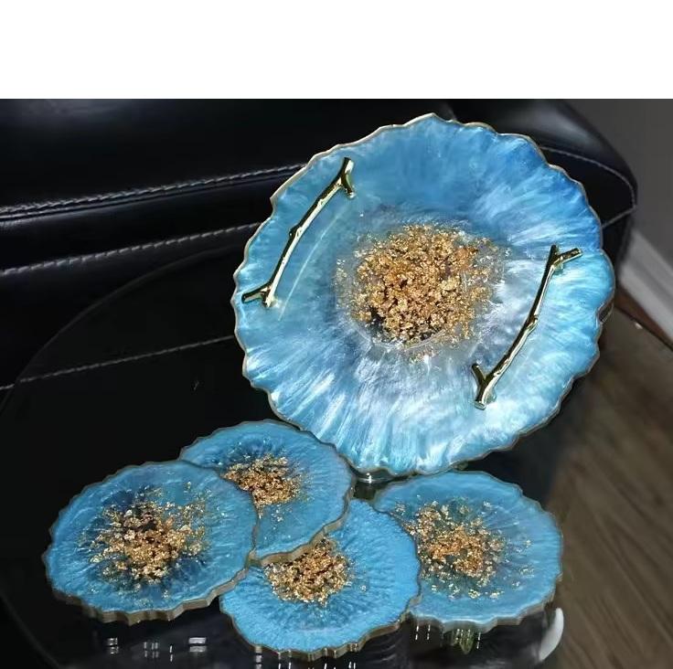 High Quality Epoxy Resin Geode Serving Tray Gold Handles Gold Leaf Design Stylish Angel Style for Coffee Jewelry Vanity Gift