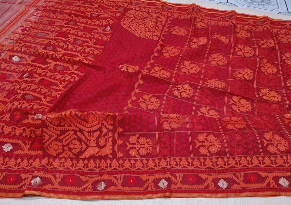 High Quality Exclusive RED Deshi Dhakai Jamdani Sharee for Women JAMDANI FABRIC Blue GREEN Golden Sky Blue From Bangladesh