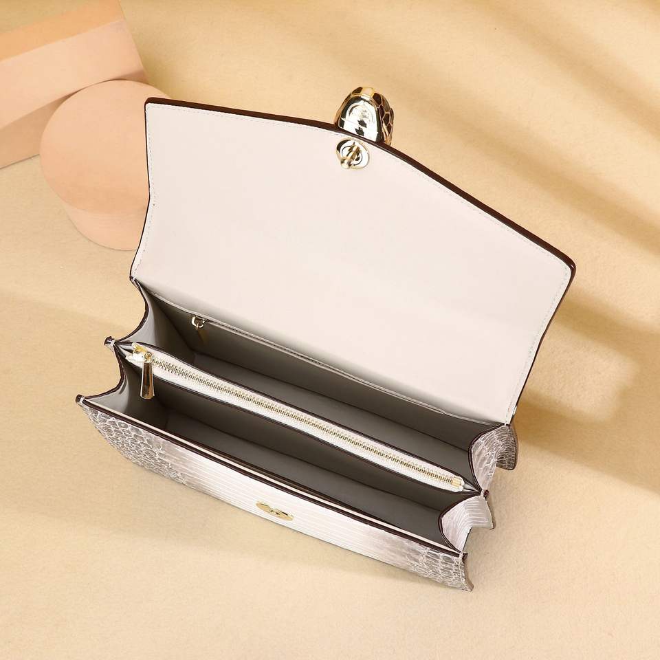 High Quality Exotic Designer Genuine Snake Skin Handbag Women Custom Genuine Leather Button Portable Single Shoulder Bag