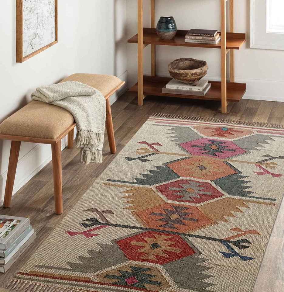 High-Quality Export Grade Hand Woven Jute-Woolen Kilim Rugs for Living Room Bedroom & Study
