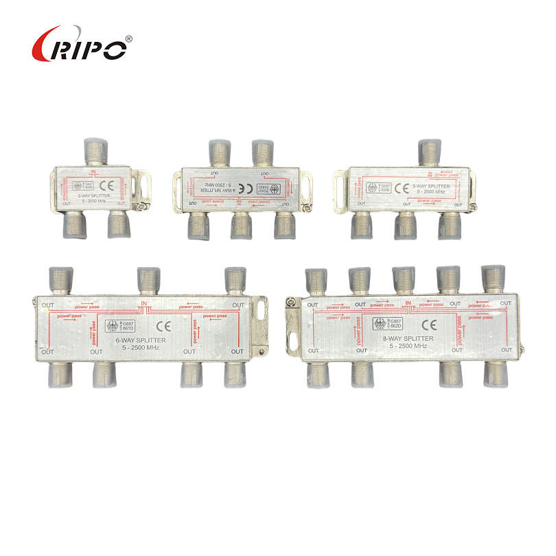 High Quality F-Type Coaxial 3-Way Splitter 5-2500MHz CE Certified Power Pass Video Splitters & Converters Made by RIPRO
