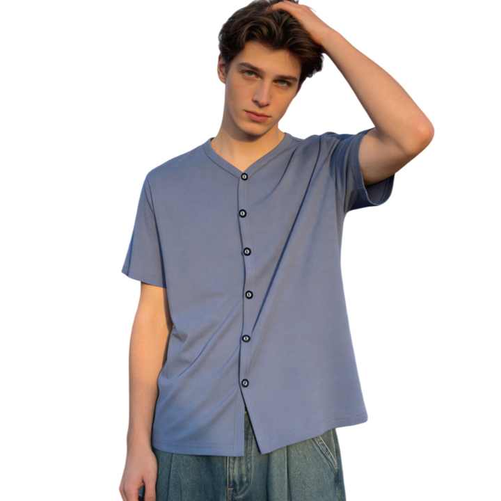 High Quality Fabric low price Men Short Sleeve t-shirt TKAN1013D Loose Fit Breathable Solid Color Casual Button Up Cardigan Tees