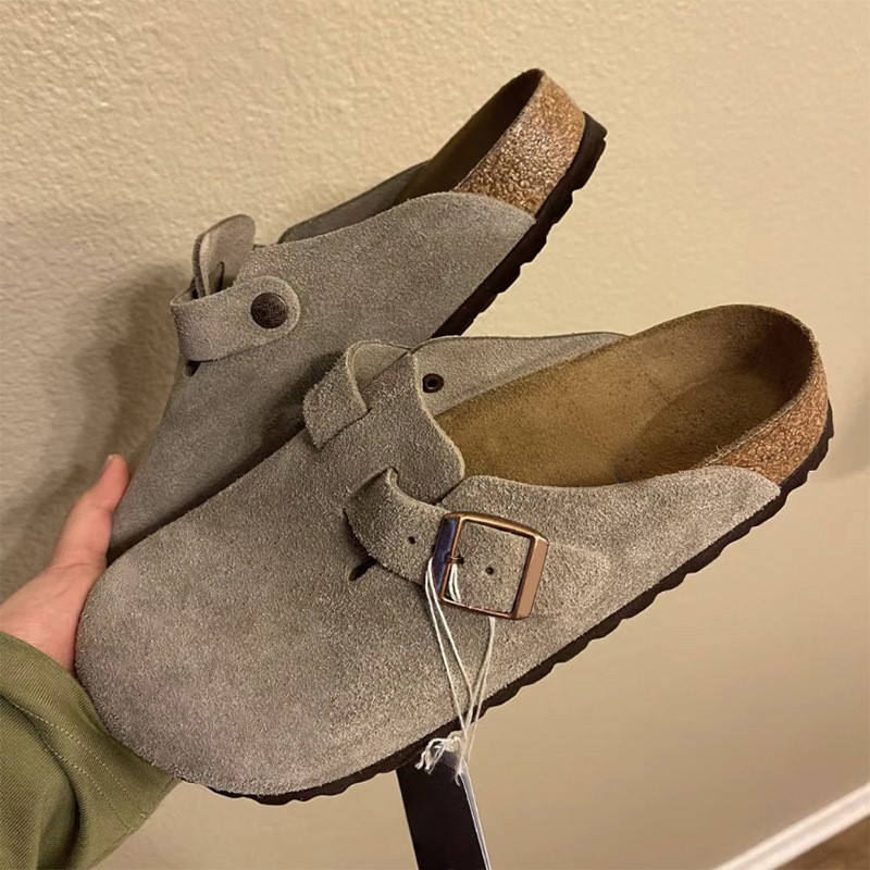 High Quality Cowhide Suede Leather Women's Mule Clog Shoes All Sizes Semi-Drag Comfortable Cork Sole Buckle for Spring