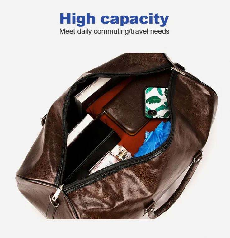 High Quality Fashion Duffle Bag PU Leather Waterproof Travel Bag for Business Men Tote Large Capacity Weekend Bag