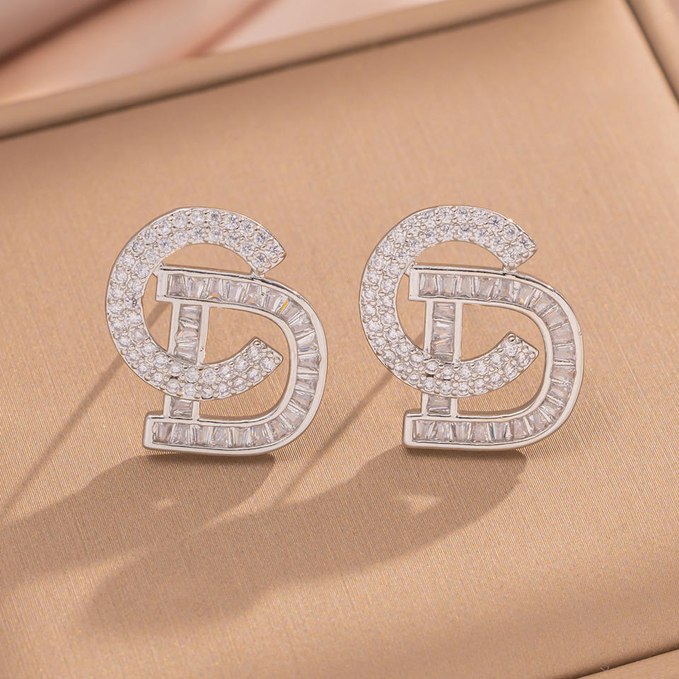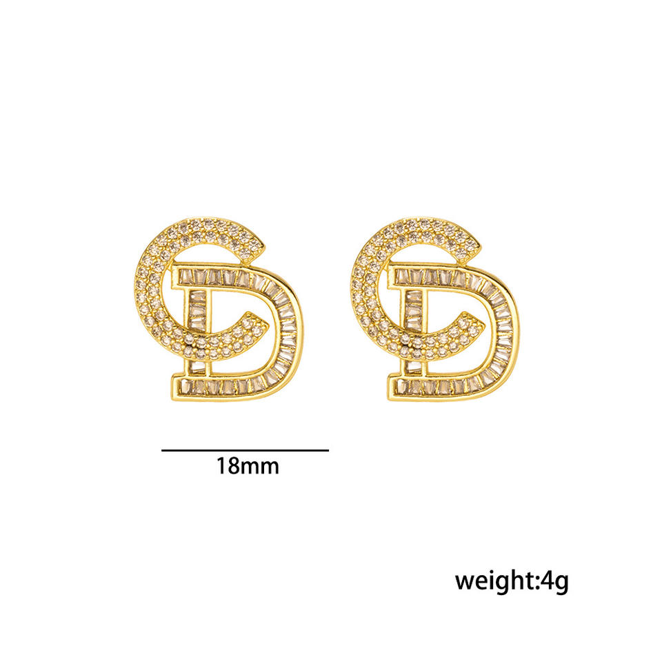 High Quality Fashion Earrings Minimalist Luxury Rhinestone Letter Shaped Studs Earrings for Women Wholesale